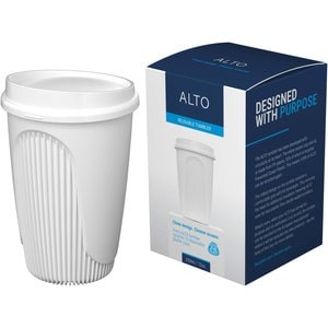 The Alto 350 ml tumbler contains 50% Prevented Ocean Plastic – every tumbler recycles and reuses 10 disposable plastic cups collected from Asia. The tumbler is a sophisticated and stylish single-walled drinking vessel featuring insulating ridges for safe and comfortable handling. It has an elegant clip-on lid with an unobtrusive relief, providing a tactile method for locating the drinking spout. Both the lid and vessel are made of fully recyclable plastics. Enjoy your favourite hot beverages in both comfort and style.