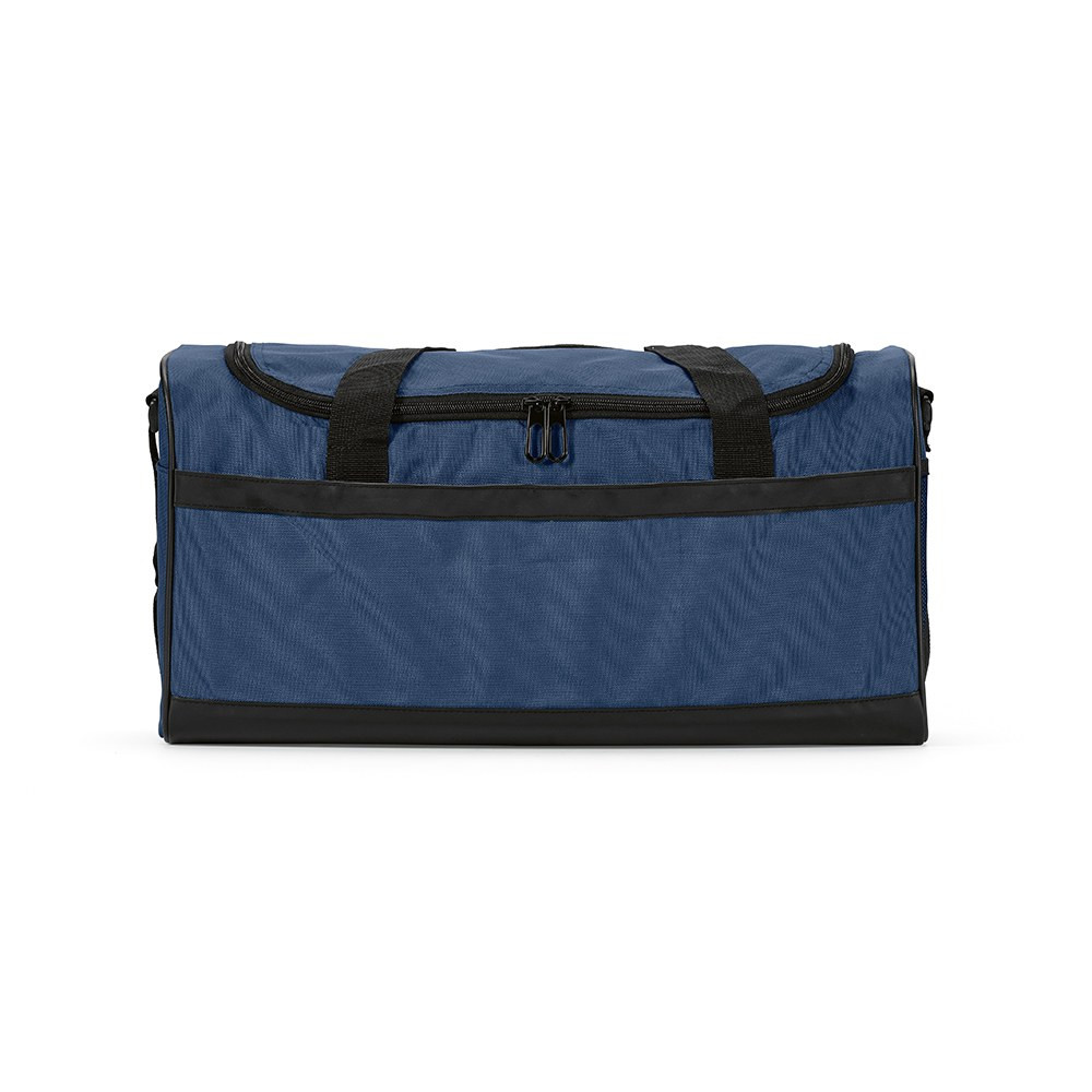 Sao Paulo M gym bag in rPET ripstop with 25L capacity. It features one spacious main compartment and a hidden zippered front pocket, ideal for keeping valuables secure and out of sight. It includes an open pocket on one side and a mesh pocket on the opposite side, perfect for holding a water bottle or quick-access items. A contrast reflective strap adds a modern touch while cleverly concealing the front pocket, combining style with smart functionality.
