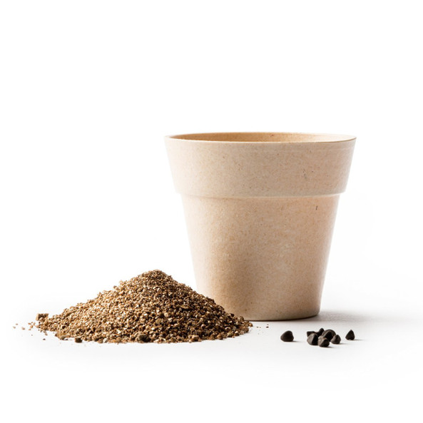 Pot with petunia seeds, made of biodegradable material, available in various colors. Comes with 5-8 petunia seeds and a packet of growing substrate.