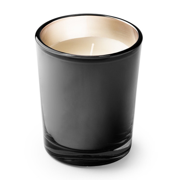 Scented candle in colored glass jar with various fragrances (coffee, pine, lavender, vanilla and strawberry)