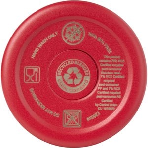 RCS certified double walled copper vacuum insulated tumbler, constructed using 91% post-consumer recycled stainless steel that will keep drinks cold for at least 24 hours. Features a Tritan straw, and a lid slider function to prevent spills. The 100% recycled plastic press-on swivel lid securely holds the straw in place, and can easily be rotated to expose the drink opening. Durable exterior powder coating. Volume capacity: 1200 ml. Hand wash only.