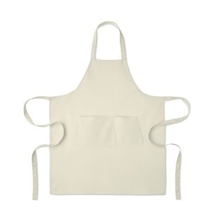 Adjustable bib apron with 1 large front pocket with 2 compartments in 240 gr/m² organic cotton.