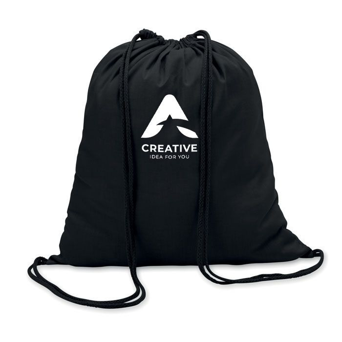 COLORED Eco-Friendly Cotton Drawstring Bag 100gr/m² 37x41CM - Black - GiftRetail MO8484