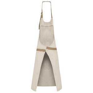 Metal buckle at the neck to adjust apron length.