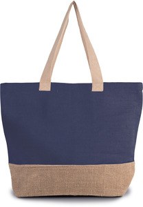 This model has dimensions of 52x16x40 cm, a volume of 33 liters, and is available in two colors: blue/natural, the first for the body of the bag, and the second for the handles and the jute base.