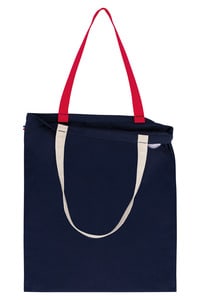 A woven label with a French flag is sewn onto the side of the bag. The 2.5-cm wide and 50-cm long woven handles are in contrasting colours.