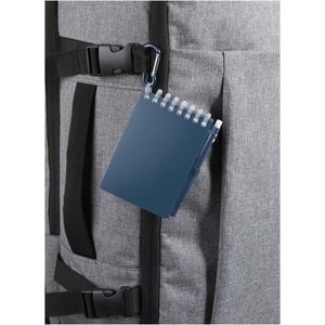 The Lig Mini notebook and pen set is a compact and practical companion for on-the-go note-taking. The spiral-bound notebook has a soft recycled plastic cover and 70 blank sheets of 120 g/m² water-resistant stone paper, making it ideal for outdoor use. With rounded corners and a built-in pen loop, it embraces the mini-size trend while remaining functional. The matching ballpoint pen is made from recycled ABS plastic, writes in black ink, and offers a writing length of 250 metres. A colour-coordinated metal ring allows the set to be easily attached to a backpack, purse, or keychain, making it perfect for durable and portable note-taking. Notebook size: 11 × 7.5 cm.