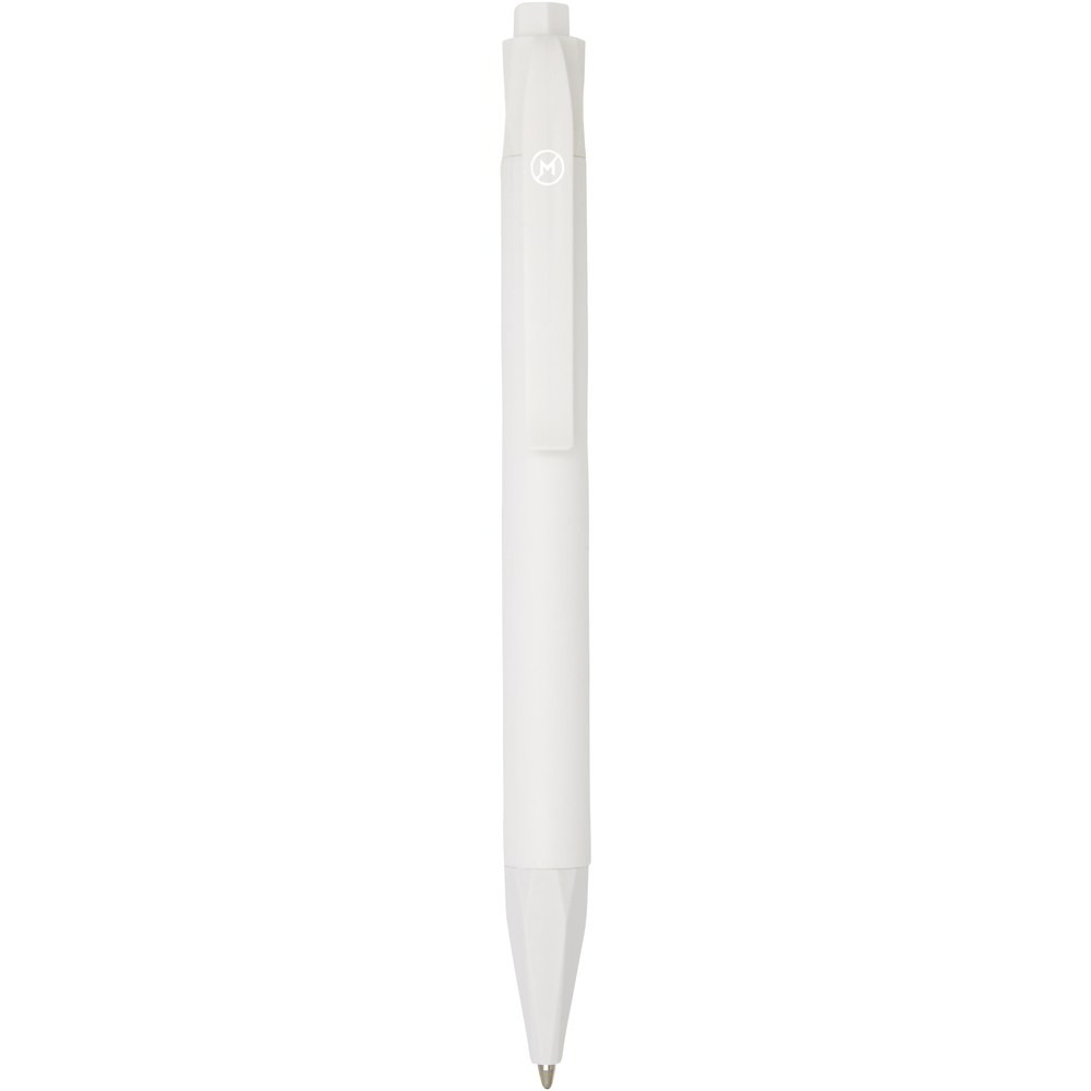 Click action longlasting and refillable ballpoint pen produced from 100% PLA (corn plastic) which reduces the amount of plastic used. Includes a refill with a writing length of approximately 2000 metres. The pen is delivered with a blue ink refill. Packed in a cardboard pen sleeve.