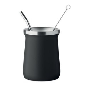 Includes stainless steel bombilla straw and cleaning brush.