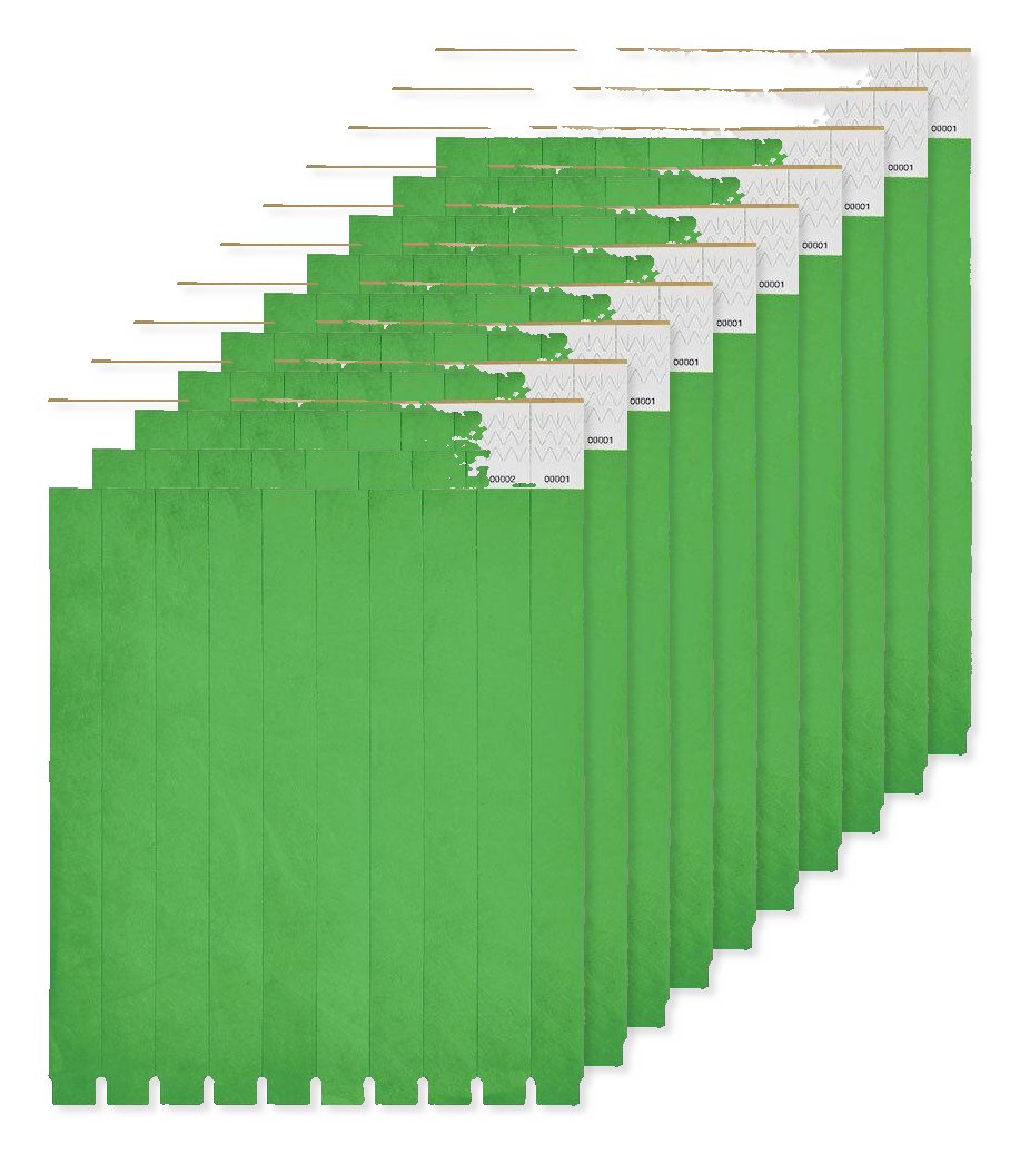 Pack of 100 GiftRetail MO8942 - Green - Durable Tyvek Event Wristbands - Pack of 10