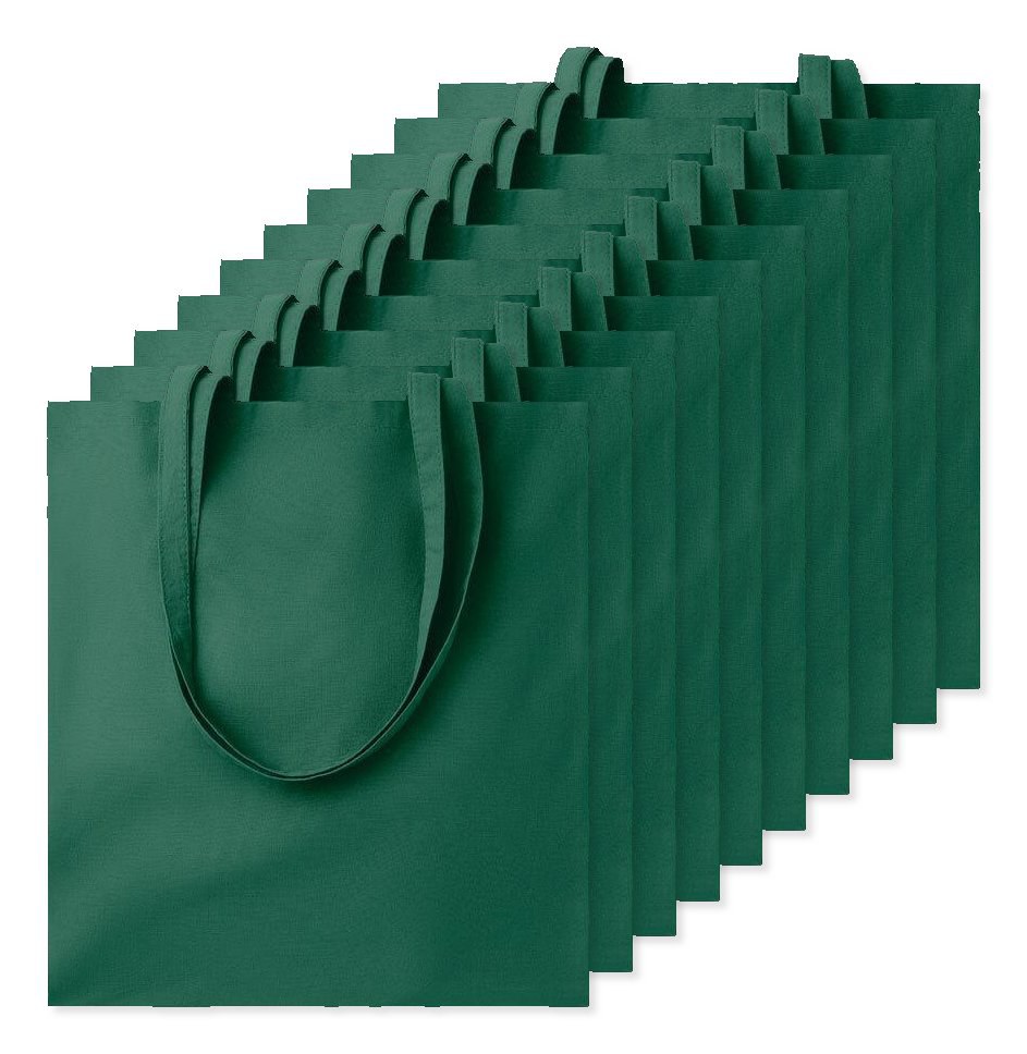 Pack of 100 GiftRetail MO9268 - Dark Green - COTTONEL COLOUR Eco-Friendly 140gsm Cotton Shopping Tote Bag