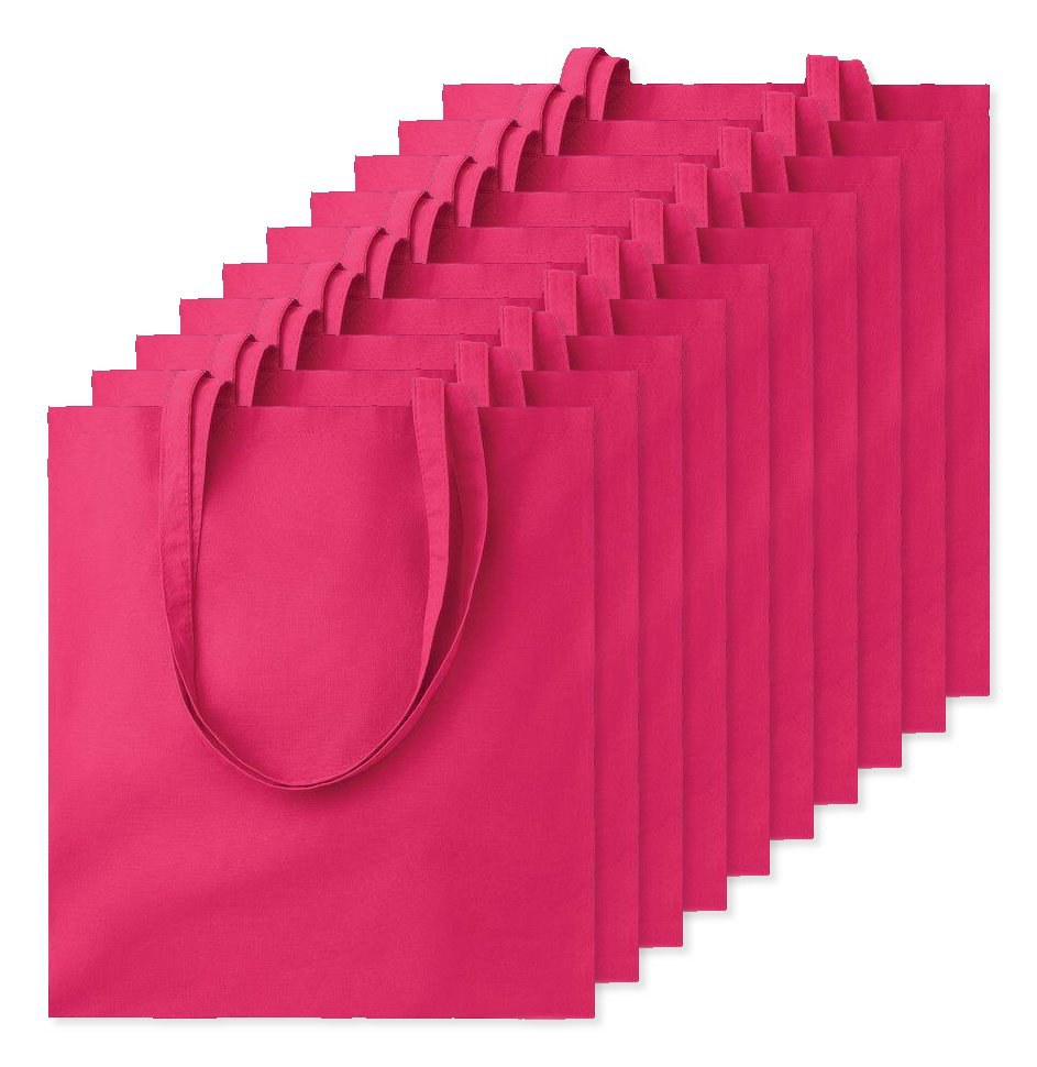 Pack of 100 GiftRetail MO9268 - Fuchsia - COTTONEL COLOUR Eco-Friendly 140gsm Cotton Shopping Tote Bag