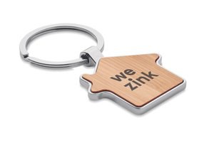 House-shaped bamboo and metal key ring for eco-friendly branding and durable everyday use. This professional accessory features a sturdy zinc alloy base with a natural bamboo front panel, making it a reliable choice for bulk promotional needs. The iconic house shape is specifically designed for real estate, construction, and home-service businesses. As bamboo is a natural material, each key ring displays unique variations in grain and color, providing an authentic look for your custom orders. Whether used as a blank basic or a customized giveaway, its 7x4x0.3cm dimensions ensure it is portable yet impactful. Perfect for wholesale distribution or as a high-quality personal accessory.