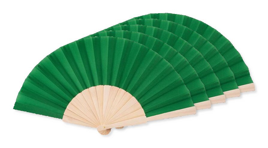 Pack of 5 GiftRetail MO9532 - Green - FANNY WOOD Elegant Wooden Hand Fan with Polyester Fabric