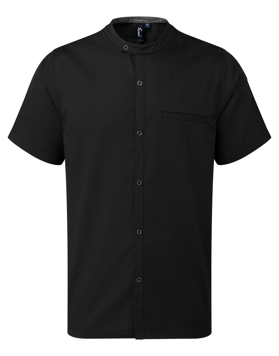 Mandarin collar with press stud fastening.