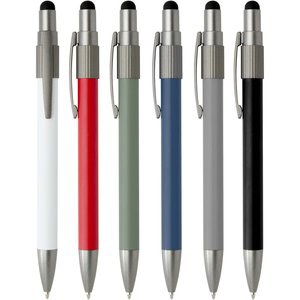 Ballpoint pen with stylus and fidget spinner, combining practicality with a playful design. The pen is made from RCS certified recycled aluminium and features a smooth push mechanism and a stylus tip for touchscreen use. A built-in fidget spinner on top adds a stress-relieving touch (just flick to activate). Pen ink colour: black. Writing length: 1000 metres.