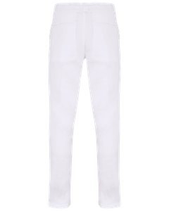 Fly with overstitching and placket with tone-on-tone recycled plastic buttons.