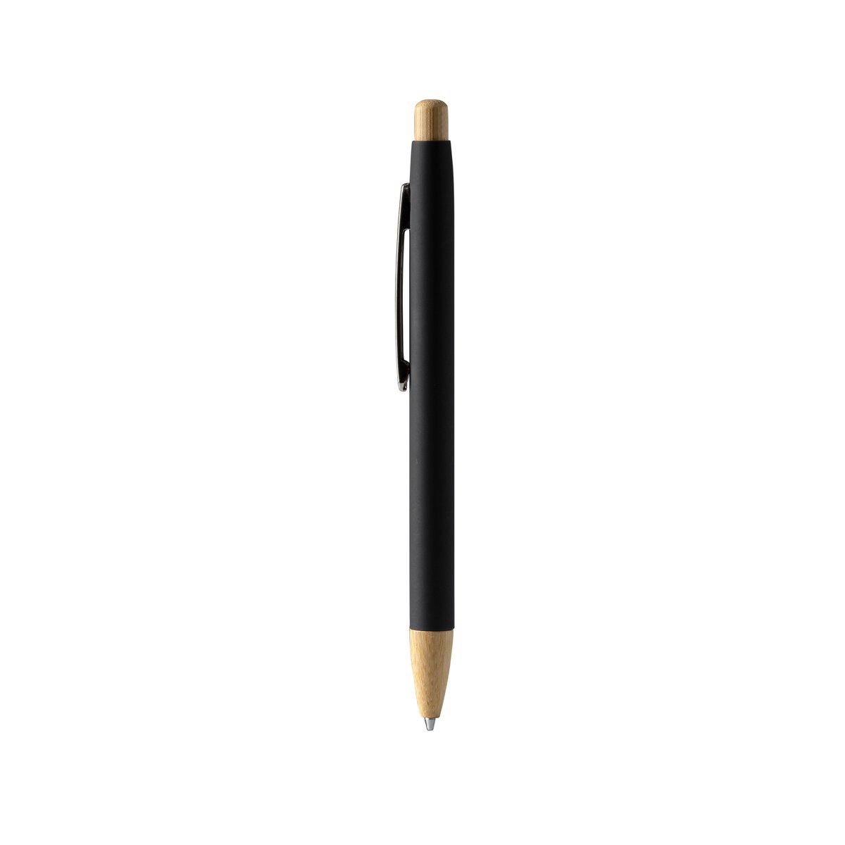 COPLA Rubber-finish metallic pen with bamboo push button and wide bamboo clip ideal for marking