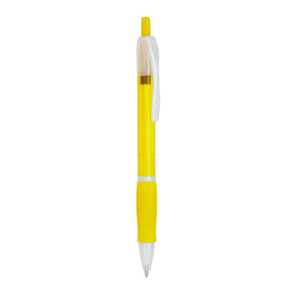 Push ball pen in translucent finish and soft matching grip.