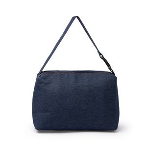 Cooler bag made from recycled denim fabric with an insulated interior to keep food at an optimal temperature.