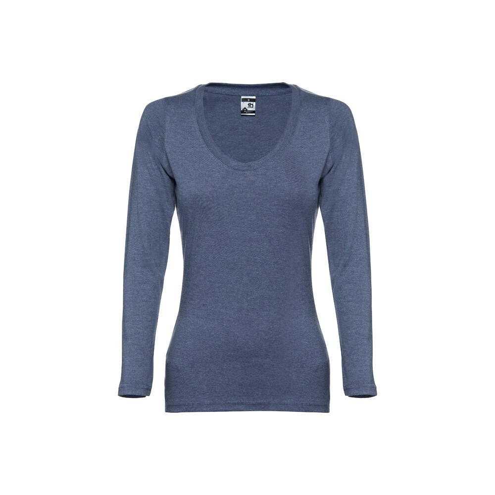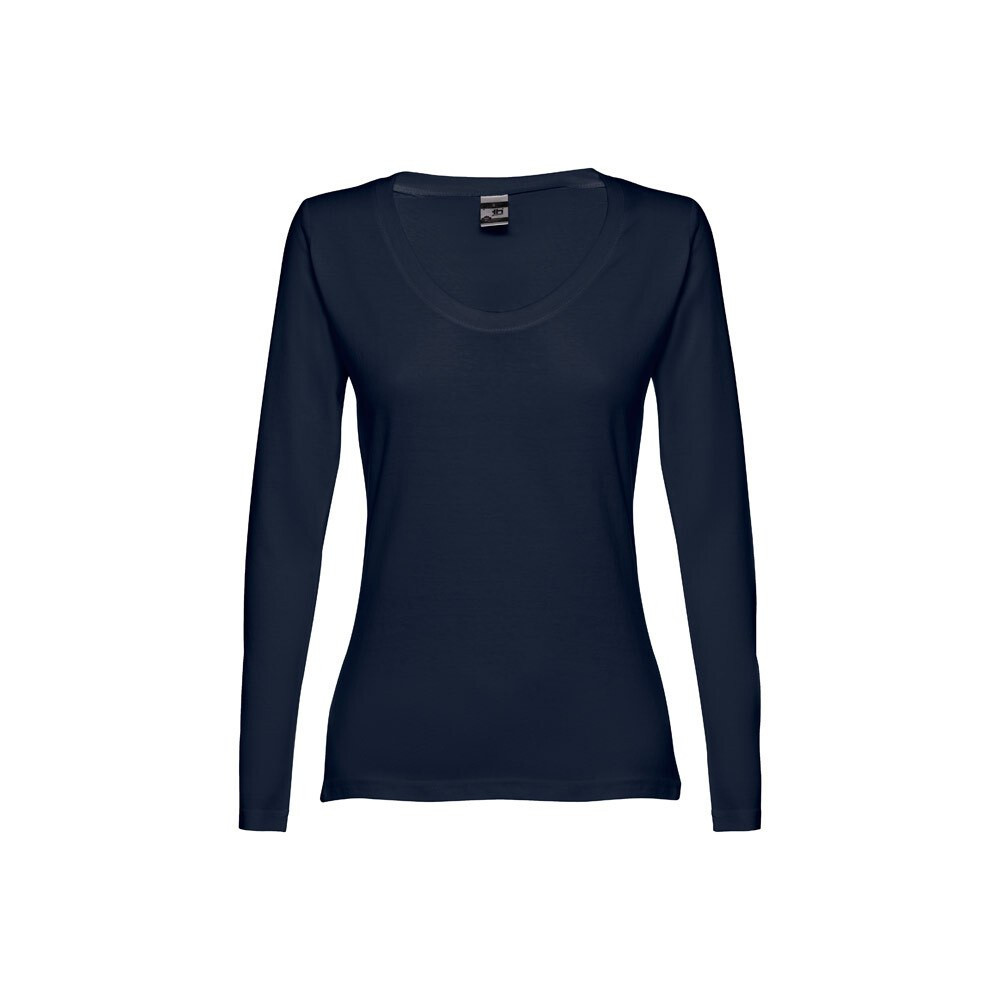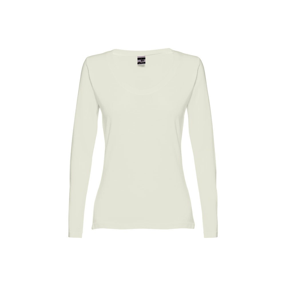 TH Clothes 30126 - Long-sleeved scoop neck fitted T-shirt for women. 100% carded cotton