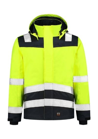 This Midi Parka High Vis Bicolor unisex work jacket T51 from the Tricorp brand is the right garment for construction workers and agents working in outdoor spaces. Being a mixed accessory, it is suitable for both men's and women's morphologies. It is presented with the attributes related to its specific use. This model has been developed in a waterproof material , and has a removable hood that will protect you from the vagaries of the outside climate. With its full zip on the front, you can quickly put it on over your clothes. The width of the sleeves is adjustable by an edging, closing via Velcro , which reinforces the quality of its breathable material . Apart from its high visibility color , this work jacket also displays retro reflective bands that draw parallel ribbons on the abdomen and the sleeves, and crossing the shoulders.