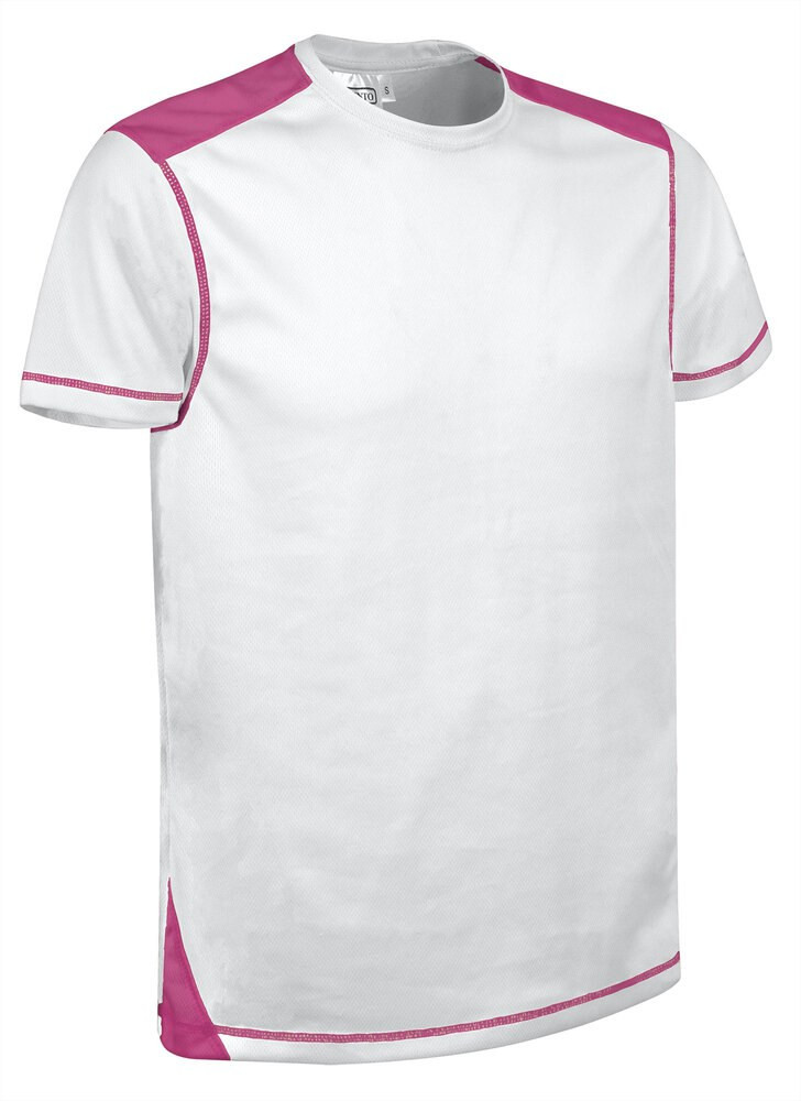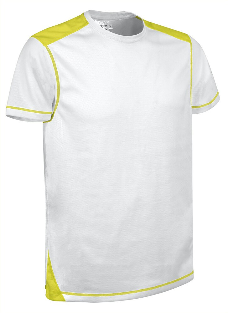 Two-Tone Short Sleeve Crewneck Sports T-shirt. Made of Bird-Eye breathable technical fabric, that promotes sweat wicking and quick-drying, ensuring optimal comfort. Contrasting colour in side bands, seams and shoulders, easily combinable with other sports garments. Flat seams on shoulders and armholes for reduced friction and enhanced comfort. Suitable marking methods: sublimation on white, screen printing, embroidery, transfer printing, vinyl application. Ideal as sportswear and workout activities.