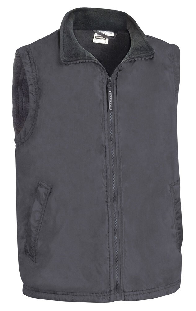 Fleece-Lined Vest with Two Pockets. Made of double fabric: water-repellent outer flat weave and anti-pilling inner fleece lining for excellent thermal insulation.Stand-up double layer collar with full-zip front closure for warmth and comfort. Reinforced seams on neck, shoulders, armholes and bottom hem for added strength and durability. Two slanted flap zippered waist pockets for a secure and convenient storage. Includes an inside back zip for easy marking with different methods: screen printing, embroidery, transfer printing, stitching, vinyl application. Ideal for physical activities and as workwear in cold environments.