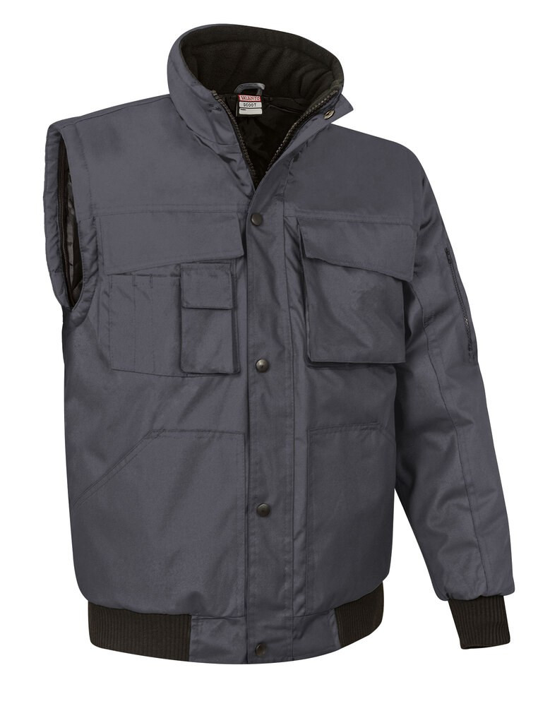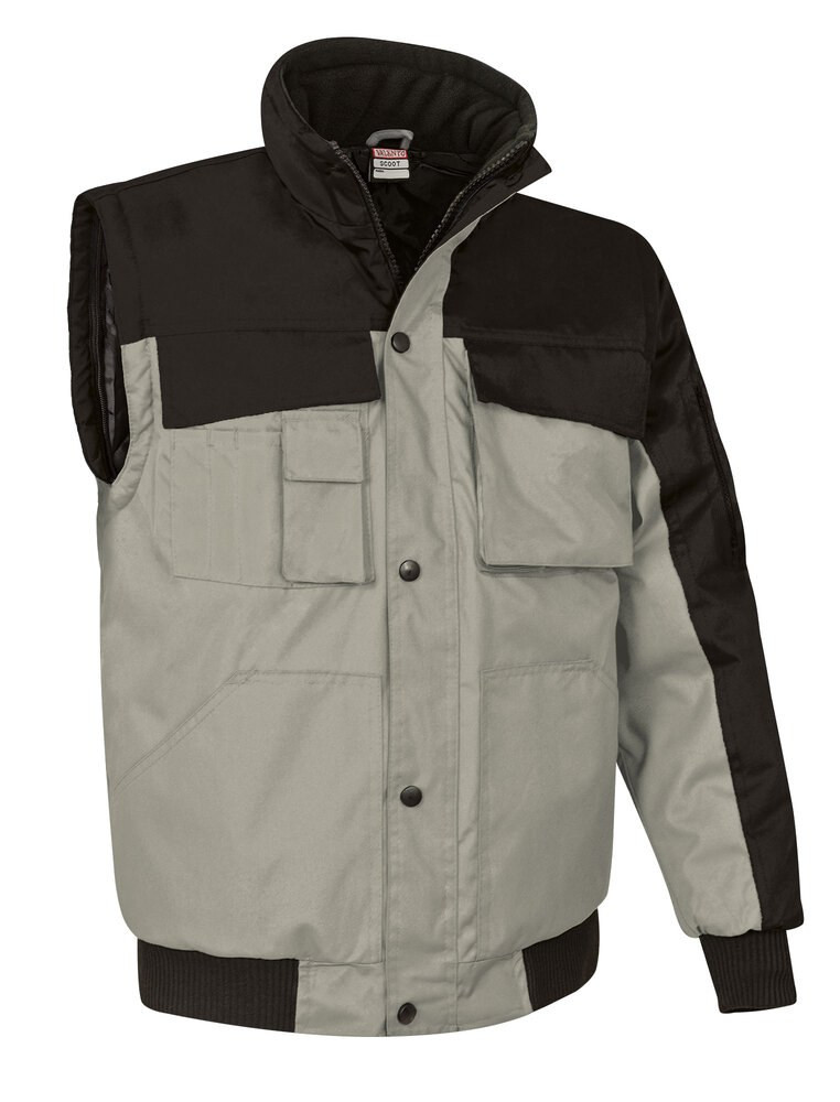 This Two-Tone Multi-Pocket Jacket has Detachable Sleeves, so you can easily convert into a Multi-Pocket Vest in seconds.Made of sturdy cotton twill blended with polyester outer fabric for strength and durability, smooth inner lining and inner quilting for ensuring excellent thermal insulation.A jacket that can be easily converted into a vest unzipping the sleeves when you need to. Elasticated waistband and cuffs for comfortably fitting. Two front gusseted pockets, two upper velcro flap pockets, two slanted pockets, two at intermediate height zippered pockets, a pen holder and an inner velcro pocket for a secure and convenient storage. Includes an inside back zip for easy marking with different methods: screen printing, embroidery, transfer printing, badges, vinyl application. Ideal as workwear and uniforms.
