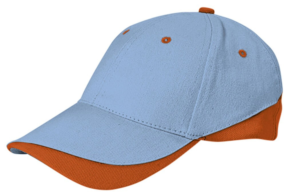 Two-Tone 6-Panel Baseball Cap. Made of thick twill fabric, 100% cotton, with a velvety soft touch, providing strength, durability and breathability.Six embroidered vents for better airflow, curved visor to prevent sunlight and provide freshness, an inner band around the contour for greater comfort. Curved front area with central stitching and thermo-fixed inner reinforcement to keep its shape.Semi-circular back opening with velcro fastening tab for a secure fit. Suitable marking methods: embroidery, stitching. Ideal as sportswear, for a corporate gift, souvenir, merchandising, and more.