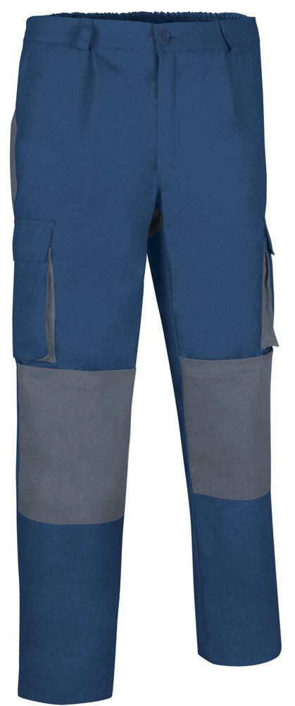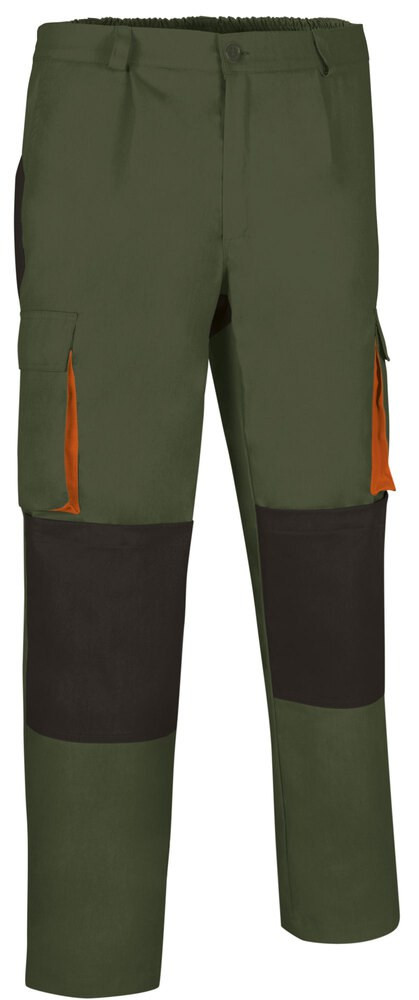 Two-Tone and Three-Tone Multi-Pocket Work Trousers.Made of a sturdy cotton twill fabric blended with polyester for strength and durability.Button-and-zipped flap fastening, back elasticated waistband, belt loops and front darts for a comfortable fit and a better adjustment.Contrasting colour back and knee pad with top access for easy attachment of knee protectors (optional).Two slanted hip pockets, two side gusseted velcro flap cargo pockets, a right back patch pocket for a secure and convenient storage, and showcase the branding.Suitable marking methods: screen printing, embroidery, transfer printing, vinyl application.Ideal as workwear and uniforms.