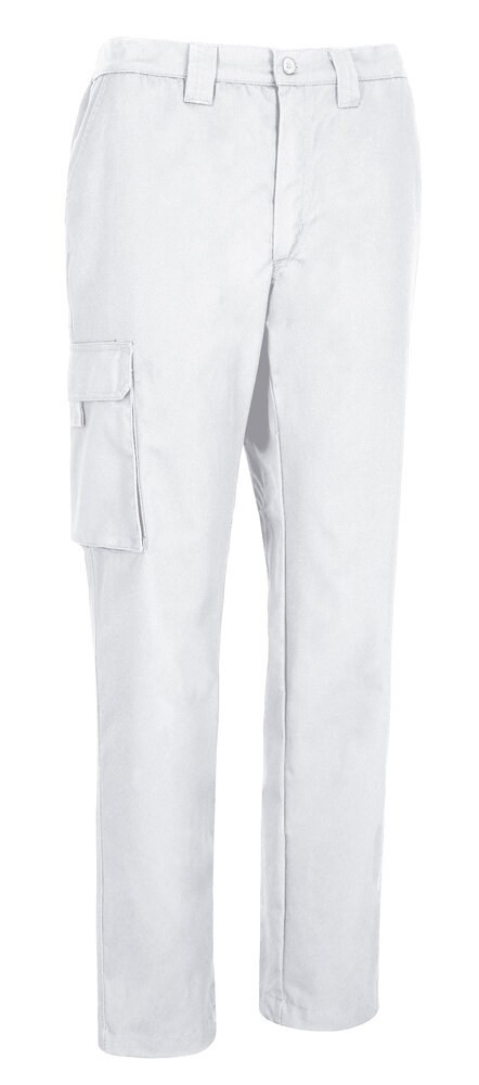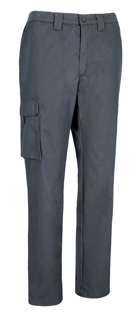 Multi-Pocket Work Trousers. Made of a sturdy cotton twill fabric blended with polyester for strength and durability.Button-and-zipped flap fastening, back and sides elasticated waistbands and belt loops for a better adjustment and a comfortable fit.Two slanted hip pockets, two buttonhole closure back pockets for easy access, a left side cutter pocket, a right side velcro cargo pocket and puller for easy opening and convenient storage.Double main seams and extra high-wear reinforcements with safety bartacks, ensuring long-lasting strength and durability.Suitable marking methods: screen printing, embroidery, transfer printing, vinyl application. Ideal as workwear and uniforms.