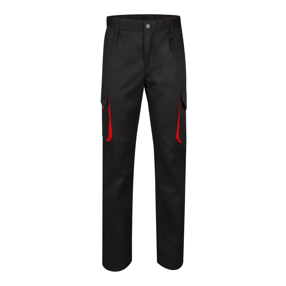 Two-tone multi-pocket twill trousers (200g/m²), in cotton (35%) and polyester (65%). With elasticated waistband and contrasting colour on the gussets, pullers and stitching. Contains six pockets: (2 French pockets, 2 side gusset pockets and 2 back gusset pockets)