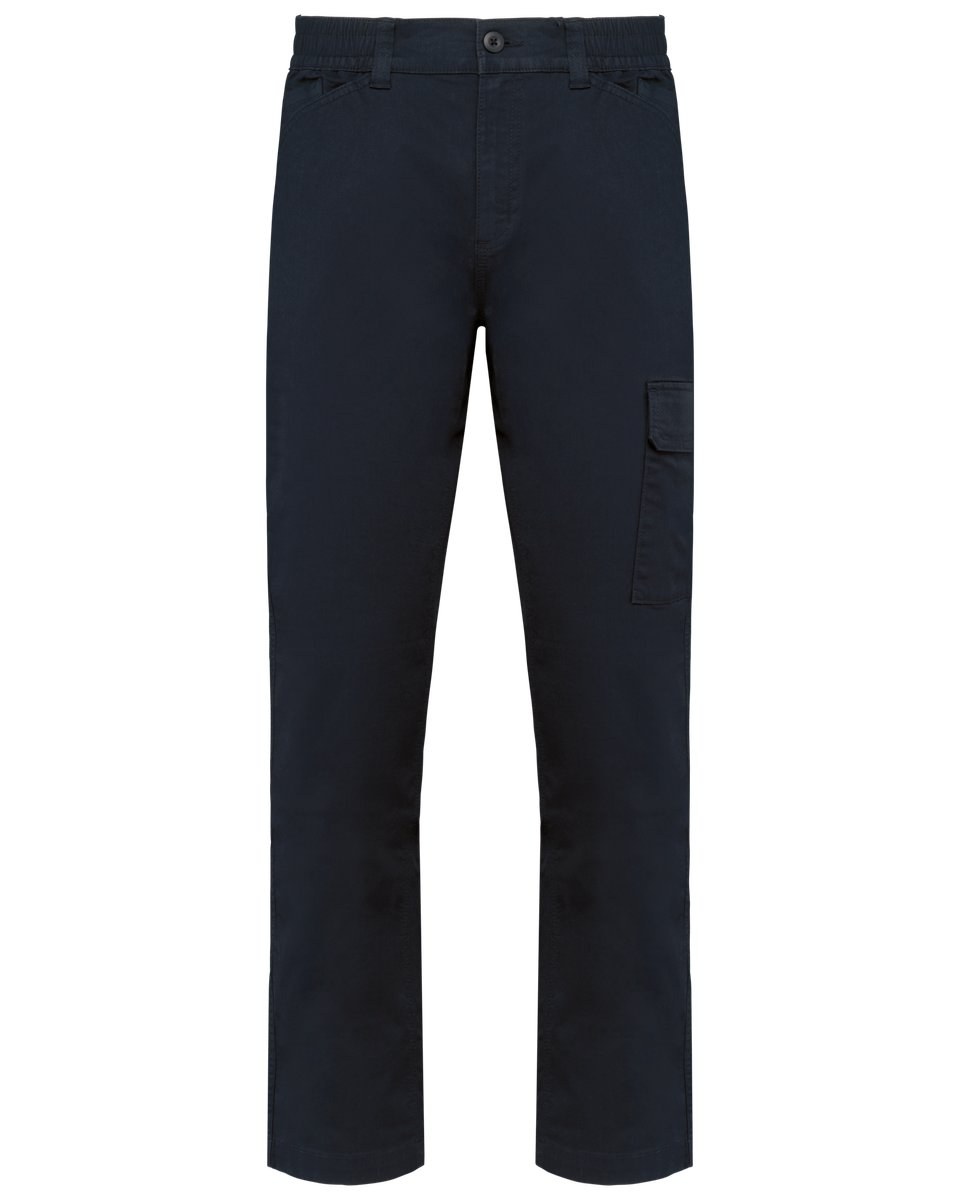 Elasticated waistband on the sides with belt loops, including one wide loop at the center back.
