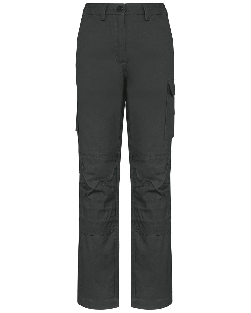 1 pocket with flaps and velcro fastening on the left when worn, 1 double open tool pocket on the right when worn, 2 back patch pockets, 2 knee pad pockets in matching colour with velcro and flap inside to support and adapt the knee pad.
